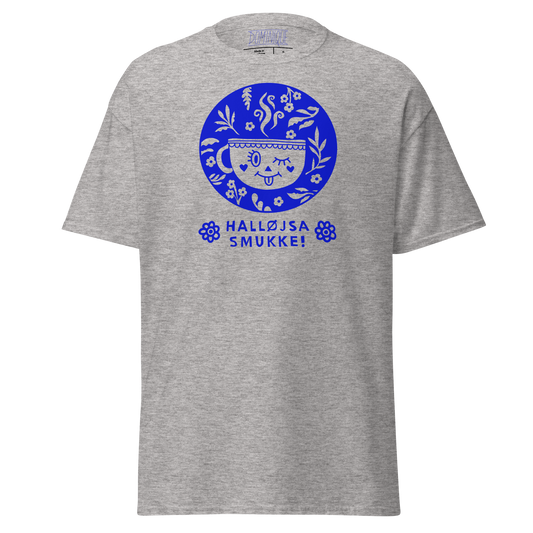 Halløjsa Smukke (BLUE) T-Shirt: Retro Danish Coffee Art for Your Wardrobe!